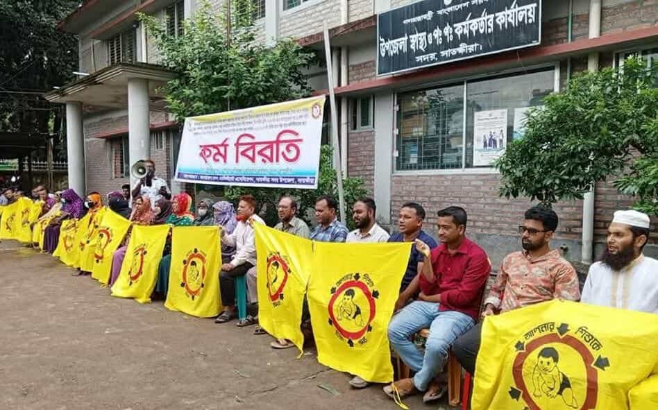 মোঃ আলফাত হোসেনঃ ৬ দফা বাস্তবায়নের দাবিতে আসন্ন টিসিভি টিকা ক্যাম্পেইনসহ সকল প্রকার কার্যক্রম বর্জন করে অনির্দিষ্টকালের জন্য কর্মবিরতি পালন করছেন স্বাস্থ্য সহকারীরা।