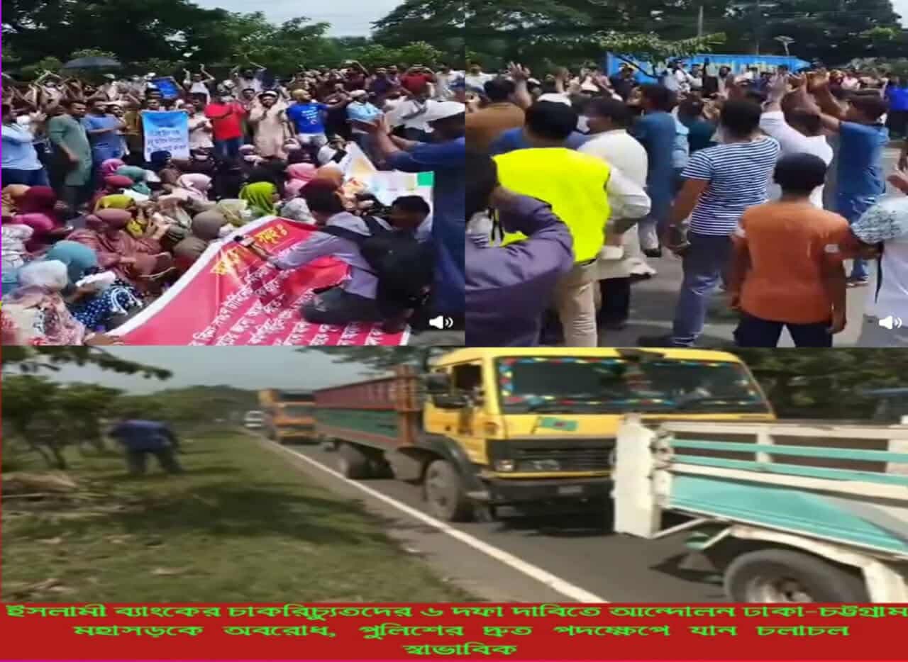 চট্টগ্রাম, ইসলামী ব্যাংক বাংলাদেশ লিমিটেডের (IBBL) চাকরিচ্যুত কর্মকর্তা ও কর্মচারীরা ৪ অক্টোবর ২০২৫ইং তারিখ দুপুরে ঢাকা-চট্টগ্রাম মহাসড়কের সীতাকুণ্ড থানাধীন ফৌজদারহাট ক্যাডেট কলেজের সামনে আকস্মিক অবরোধ কর্মসূচি পালন করেন। চাকরিচ্যুতি ও অন্যান্য প্রশাসনিক সিদ্ধান্তের প্রতিবাদে আন্দোলনকারীরা এই গুরুত্বপূর্ণ মহাসড়কটি সাময়িকভাবে বন্ধ করে দেন, যার ফলে উভয় পাশে দ্রুত যানবাহনের দীর্ঘ জট সৃষ্টি হয় এবং সাধারণ যাত্রীদের চরম ভোগান্তি পোহাতে হয়।