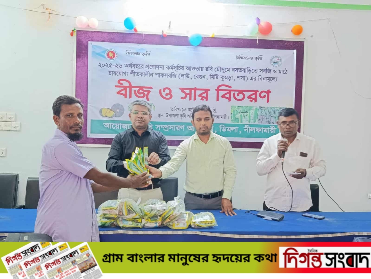 অনুষ্ঠানে মোট ১৫০ জনকৃষককে বিনামূল্যে ৭ প্রকার শীতকালীন সবজি বীজ সরবরাহ করা হয়। প্রত্যেক কৃষককে দেওয়া হয়: