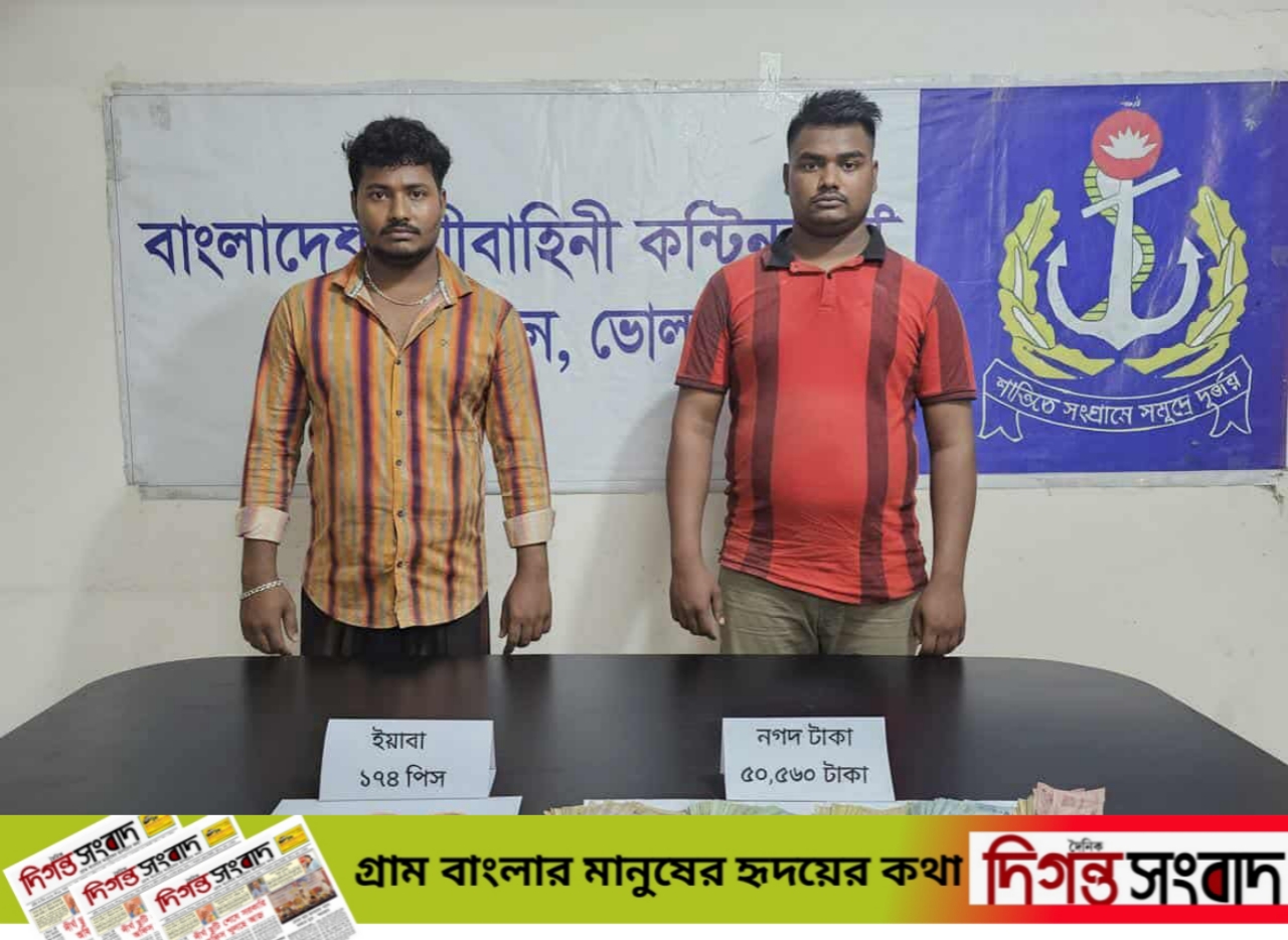 বাংলাদেশ নৌবাহিনীর শ্বাসরুদ্ধকর অভিযান, ১৭৪'পিস ইয়াবা ও ব্যবসায় ব্যবহৃত ৫০'হাজার ৫৬০'টাকা'সহ দুই মাদক ব্যবসায়ী আটক।