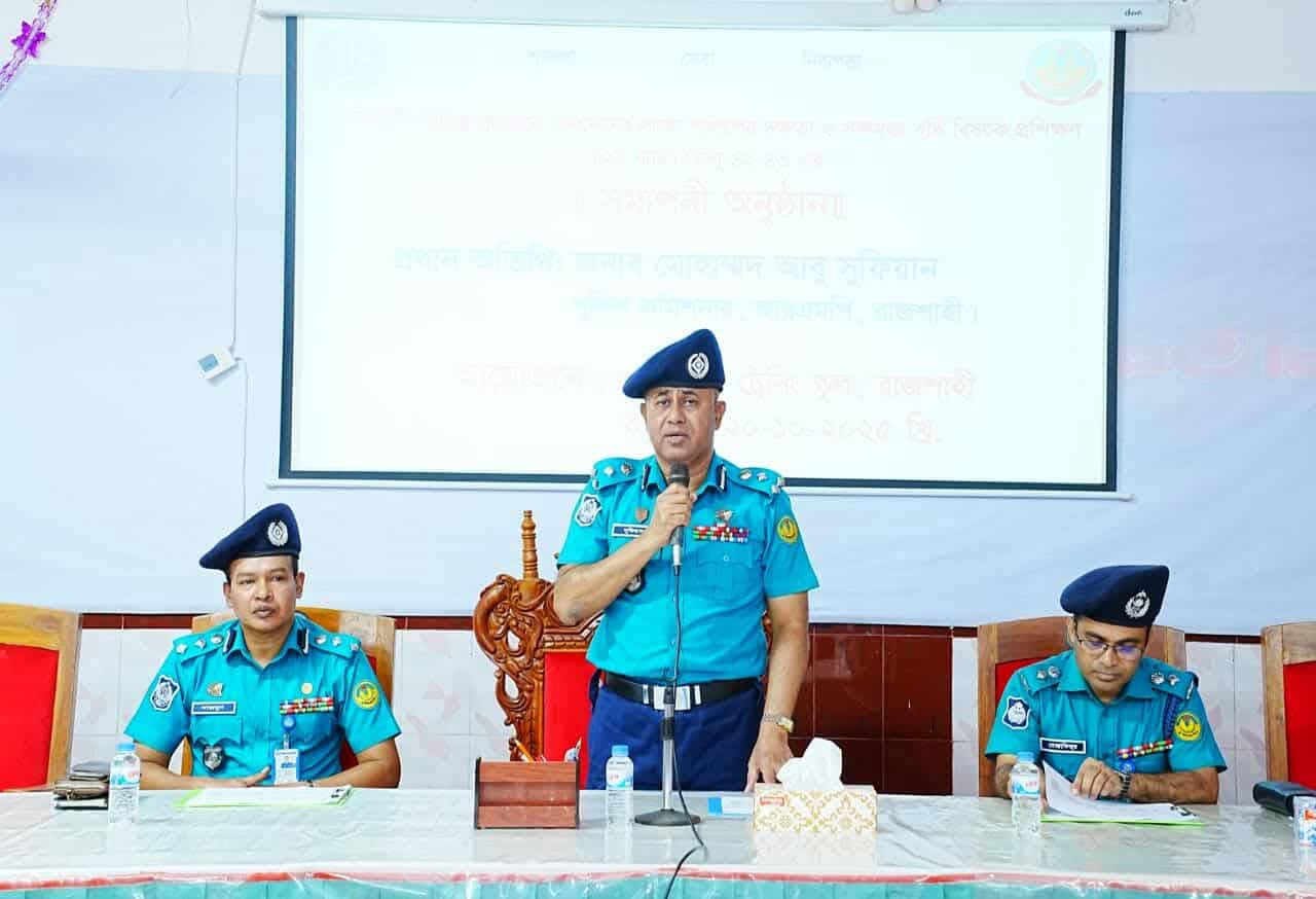 বাংলাদেশ পুলিশের অন্যান্য ইউনিটের ন্যায় রাজশাহী মেট্রোপলিটন পুলিশ (আরএমপি) -এর উদ্যোগে নির্বাচনি দায়িত্ব সুষ্ঠুভাবে সম্পাদনের লক্ষ্যে পুলিশের দক্ষতা ও সক্ষমতা বৃদ্ধিমূলক ৩ দিনব্যাপী প্রশিক্ষণ কর্মশালার দ্বিতীয় ব্যাচের সমাপনী অনুষ্ঠান অনুষ্ঠিত হয়েছে।