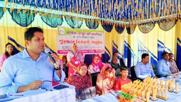 নীলফামারীর জলঢাকা উপজেলায় ব্র্যাক প্রাথমিক বিদ্যালয়ের উদ্যোগে বার্ষিক ক্রীড়া প্রতিযোগিতার বিজয়ী ও কৃতি শিক্ষার্থীদের মাঝে সনদ ও পুরস্কার বিতরণ করা হয়েছে। এ উপলক্ষে সোমবার সকালে উপজেলা পরিষদ চত্বরের উন্মুক্ত মঞ্চে এক আলোচনা সভা ও পুরস্কার বিতরণী অনুষ্ঠিত হয়। এতে প্রধান অতিথি হিসেবে বিজয়ী ও কৃতি শিক্ষার্থীদের হাতে সনদ, ক্রেষ্ট ও পুরস্কার তুলে দেন উপজেলা নির্বাহী কর্মকর্তা জায়িদ ইমরুল মোজাক্কিন। এসময় তিনি, এই প্রজন্মকে আগামী বিশ্বের সাথে তাল মিলিয়ে সময়োপযোগী করে গড়ে তুলতে শিক্ষকদের পাশাপাশি অভিভাবকদের বড় ভূমিকা পালন করতে হবে। এজন্য তিনি মা বাবাকে সন্তানদের প্রতি যত্নশীল হওয়ার আহবান জানান। এসময় উপস্থিত ছিলেন ব্র্যাকের কোয়ালিটি ফ্যাসিলেটর জাহাঙ্গীর আলম, জলঢাকা ব্রাক প্রাথমিক বিদ্যালয়ের প্রধান শিক্ষক সিমু হেলাল, চাপানী ব্র্যাক প্রাথমিক বিদ্যালয়ের প্রধান শিক্ষক নাদিরা আকতার, শিক্ষানুরাগী সিরাজুল ইসলাম ও ব্র্যাক প্রাথমিক বিদ্যালয়ের সহকারী প্রধান শিক্ষক মারুফা আকতার প্রমুখ। পরে বিদ্যালয়ের শিক্ষার্থীদের অংশগ্রহণে মনোজ্ঞ সাংস্কৃতিক অনুষ্ঠান অনুষ্ঠিত হয়।