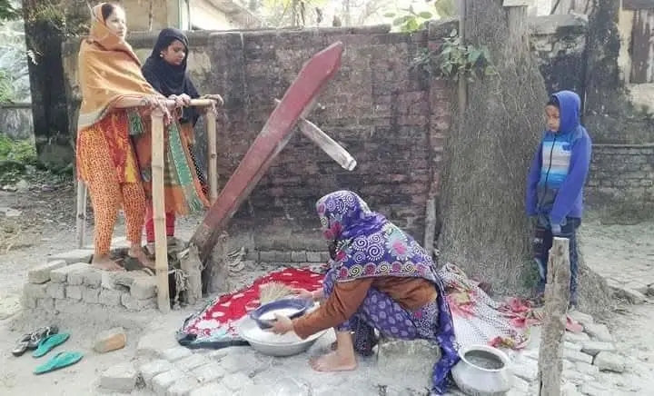 পূর্ব আকাশে রক্তিম আভা ছড়িয়ে আছে, কিছুক্ষণের মধ্যেই পৃথিবী সূর্যের আলোয় আলোকিত হবে। চারদিকে পাখির কিচিরমিচির শব্দে মুখরিত। এমনই পরিবেশে কৃষকের বাড়িতে ঢেঁকিতে ধান ভানে গৃহিণীরা। পাখির কিচিরমিচির ডাকের সঙ্গে ঢেঁকির ধুপধাপ শব্দ ভেসে বেড়ায় কৃষকের আঙিনায়। বলছিলাম আবহমান বাংলার ঐতিহ্য ঢেঁকির কথা যা এখন আর আগের মতো চোখে পড়ে না। এক সময় ঐতিহ্যবাহী ঢেঁকি লুকিয়ে ছিল আমাদের গ্রামবাংলার প্রাচীন জনপদে। ঠিক তেমনি অামাদের গ্রাম গুলোতেও একসময় ঢেঁকির প্রচলন ছিল। ভোরের আজানের পাশাপাশি স্তব্ধতা ভেঙে ঢেঁকির শব্দ ছড়িয়ে পরত গাঁও গ্রামে র চারদিকে। এখন সেই শব্দ আর শোনা যায় না। চোখে পড়ে না বিয়ে স্বদির উৎসবের ঢেঁকি ছাঁটা চালের ফিরনি-পায়েস। অথচ একদিন ঢেঁকি ছাড়া গ্রাম কল্পনা করাও কঠিনতর ছিল। যেখানে বসতি ছিল সেখানেই ঢেঁকি ছিল। কিন্তু আজো তা আমাদের আবহমান গ্রামীণ সংস্কৃতি থেকে হারিয়ে যাচ্ছে। তবে এখনও মাঝে মধ্যে গ্রামীণ জনপদে কিছু উৎসব-পার্বণে পিঠা বানানোর জন্য চালের গুঁড়ি তৈরি করতে পুরোনো ঢেঁকির ধুপধাপ শব্দ শোনা যায়। আত্মীয়-স্বজন একসঙ্গে ঢেঁকিতে পা-র দিয়ে চালের গুড়ো তৈরীতে যে আনন্দ পেয়ে থাকে তা কলে ছাঁটায় পাওয়া কখনও সম্ভব নয়। এখন শিক্ষার প্রসার গ্রামেও বিস্তার লাভ করেছে। গ্রামের বউ-ঝিরা বলতে গেলে প্রচলন না থাকাই অবশ্য ঢেঁকির এসব কর্মকান্ড প্রায় ভুলেই গেছে। বয়সের ভারে নুইয়ে পড়া বৃদ্ধা বা বয়স্ক মা-বোনে রা গর্ব করে বলত এই ঢেঁকি আমার দাদা শ্বশুরের হাতের। শীতকালের পাখি ডাকা ভোরে নবান্নের আনন্দে মেতে উঠত অজো পাড়া গাঁ। এ সময় ঢেঁকির শব্দ কৃষককে মাঠে যাওয়ার জন্য তাড়া দিত। গ্রাম বাংলার ঘোমটা পরা বধূরা বিভিন্ন কায়দা-কানুনে ঢেঁকির তালে তালে তাদের বাপ-দাদার আমলের গীত গেয়ে চলত। কিন্তু এখন সর্বত্রই অসংখ্য যান্ত্রীক ধান ভাঙার মেশিন ঢেঁকির সেই মধুময় ছন্দ কেড়ে নিয়েছে। গ্রামীণ জনপদেও সেই কর্ম চঞ্চল্য স্তব্ধ করে দিয়েছে । ঢেঁকি একটি শিল্প। এক সময় ঢেঁকি শিল্পের ব্যাপক কদর ছিল। ছিল ঢেঁকি থেকে উৎপাদিত চালের ব্যাপক প্রচলন। লাখ লাখ পরিবার সরাসরি প্রত্যক্ষ ও পরোক্ষভাবে এ শিল্পের সঙ্গে জড়িত ছিল। তৎকালীন সময়ে ঢেঁকিতে চাল ভানানী মা-বোন রা তাদের উৎপাদিত চাল বিক্রি করে আর্থিকভাবে যে টুকু লাভবান হতো তাতে করে তারা কেবল নিজেদের সংসার খরচই মেটাত না, সেই সঙ্গে কিছু টাকা-পয়সা অন্য খাতে বিনিয়োগ অথবা সঞ্চয়ও করত। আধুনিক চাল কলের ব্যাপক প্রসারের কারণে ঢেঁকি শিল্পীদের অনেকেই অর্ধাহারে, অনাহারে দিনমজুরি, ইট ভাটা সহ বিভিন্ন পেশা বেছে নিয়েছেন। তা ছাড়া কেউ কাঁথা সেলাই আবার কেউবা দর্জির কাজ করেন। গ্রামীণ সাধারণ মা-বোন দের কাছে এটি ছিল অতীব প্