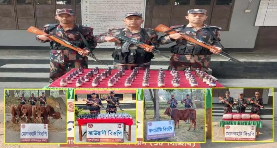 লালমনিরহাট ব্যাটালিয়ন (১৫ বিজিবি) এর দায়িত্বপূর্ণ সীমান্ত এলাকায় চলমান চোরাচালান ও মাদকবিরোধী কার্যক্রমের অংশ হিসেবে গোয়েন্দা তথ্যে ভিত্তিতে বিভিন্ন বিওপির বিশেষ টহলদল ০৫টি পৃথক অভিযান পরিচালনা করে ভারতীয় গরু, ফেন্সিডিল, ইস্কাফ সিরাপ ও গাঁজা জব্দ করেছে। এসব অভিযানে বিজিবি সীমান্ত নিরাপত্তা ও মাদকবিরোধী কার্যক্রমে তাদের অটুট অবস্থানের প্রমাণ উপস্থাপন করেছে।
