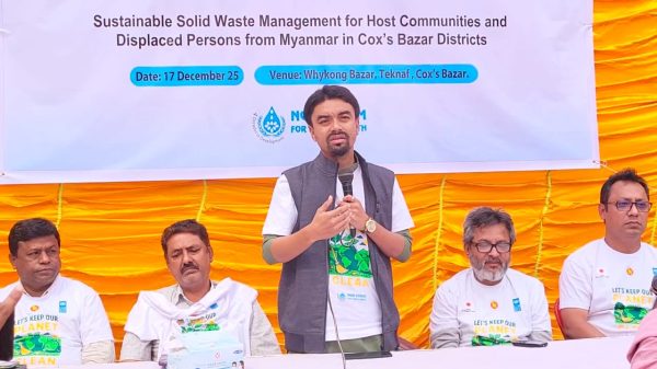 কামরুল ইসলাম,টেকনাফ(কক্সবাজার) প্রতিনিধি : কক্সবাজারের টেকনাফ উপজেলার হোয়াইক্যং বাজারে টেকসই কঠিন বর্জ্য ব্যবস্থাপনা নিশ্চিত করার লক্ষ্যে একটি গণপরিচ্ছন্নতা অভিযান অনুষ্ঠিত হয়েছে। এনজিও ফোরামের বাস্তবায়নে এবং ইউএনডিপির অর্থায়নে বুধবার (১৭ ডিসেম্বর)