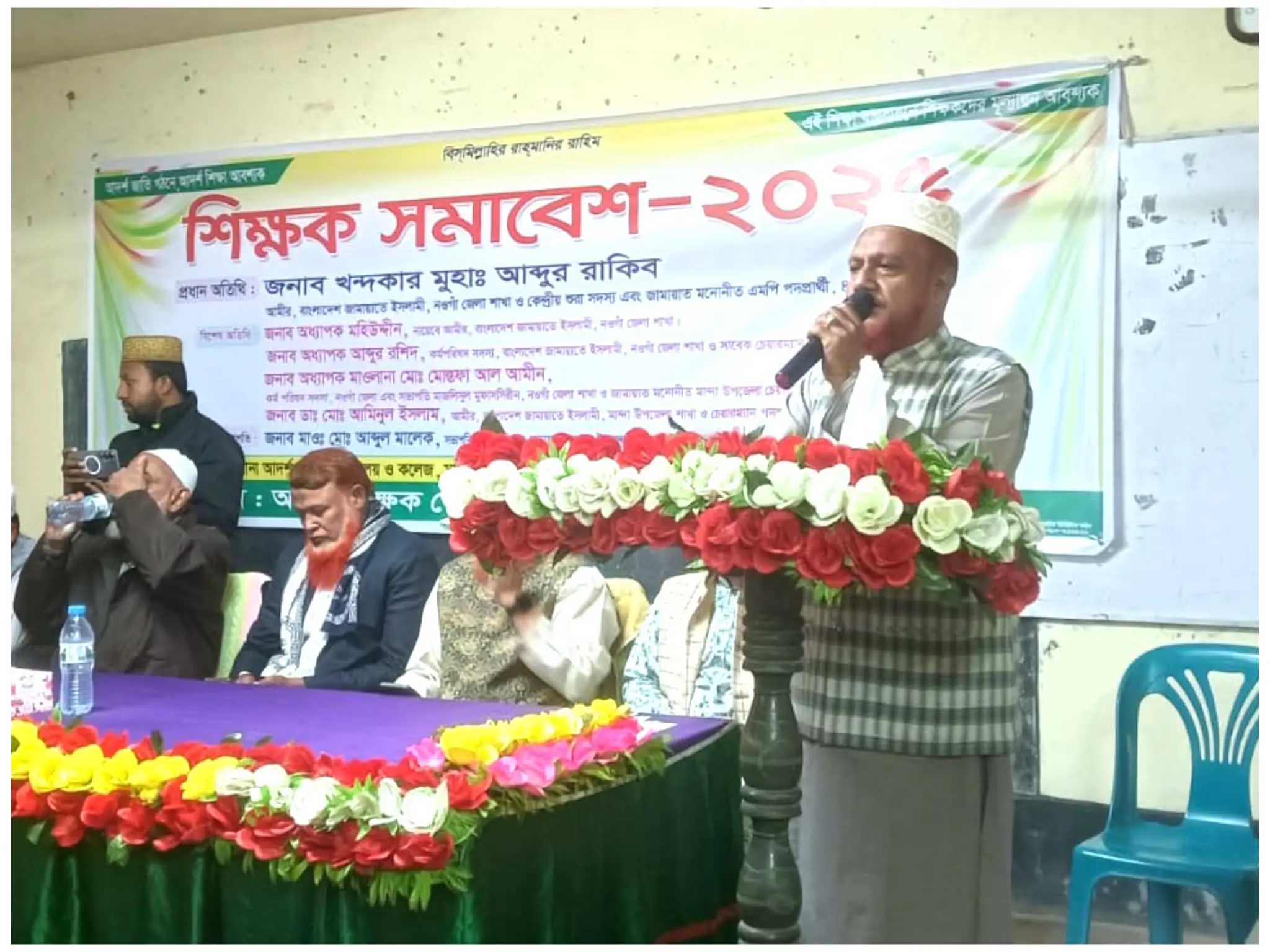 সভায় সভাপতিত্ব করেন আদর্শ শিক্ষক ফেডারেশন মান্দা শাখার সভাপতি ও সাঁকোয়া বাকশৈল মাদ্রাসা প্রভাষক মাওলানা মো.আব্দুল মালেক। প্রধান অতিথি হিসেবে উপস্থিত ছিলেন, বাংলাদেশ জামায়াতে ইসলামের নওগাঁ জেলা আমীর ও ৪৯ নওগাঁ (৪) মান্দা আসনের মনোনীত এমপি প্রার্থী খন্দকার মুহা. আব্দুর রাকিব।