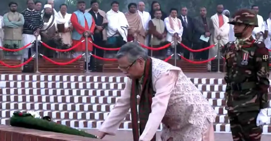 আজ মঙ্গলবার (১৬ ডিসেম্বর) ভোরে সাভারে জাতীয় স্মৃতিসৌধে পুষ্পস্তবক অর্পণ করে মহান বিজয় দিবসের ৫৫ বছর উদযাপনে জাতীয় স্মৃতিসৌধে বীর শহীদদের উদ্দেশে শ্রদ্ধা নিবেদন করেছেন রাষ্ট্রপতি মো. সাহাবুদ্দিন।