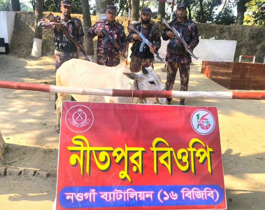 নওগাঁ জেলার পোরশা থানার অন্তর্গত নওগাঁ ব্যাটালিয়নের অধীনস্থ নীতপুর বিওপির টহল কমান্ডার সুবেদার মোঃ মাহফুজুর রহমান এর নেতৃত্বে একটি বিশেষ টহল দল কপালীর মোড় নামক স্থানের কাঁচা রাস্তার পাশে অভিযান পরিচালনা করে মালিকবিহীন অবস্থায় ০১টি ভারতীয় গরু আটক করতে সক্ষম হয়। আটককৃত ভারতীয় গরু নজিরপুর পত্নীতলা শুল্ক কার্যালয়ে জমা করার কার্যক্রম প্রক্রিয়াধীন রয়েছে।