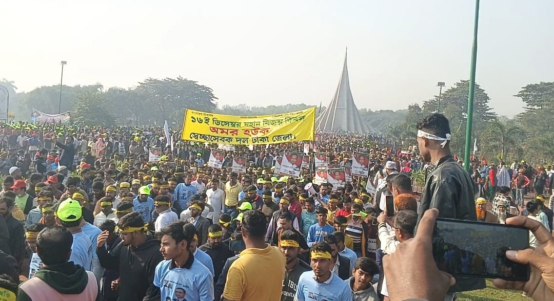 মহান বিজয় দিবস উদযাপন ও একাত্তরের বীর শহীদদের প্রতি শ্রদ্ধা জানাতে সাভারের জাতীয় স্মৃতিসৌধে সাধারণ মানুষের ঢল নেমেছে। মঙ্গলবার (১৬ ডিসেম্বর) সকাল থেকেই লাল-সবুজের পতাকা হাতে শিশু থেকে বৃদ্ধ—সর্বস্তরের মানুষের পদচারণায় ওঠে পুরো স্মৃতিসৌধ এলাকা। খণ্ড খণ্ড মিছিল নিয়ে হাজারো মানুষ শহীদদের প্রতি বিনম্র শ্রদ্ধা ও ভালোবাসা জানাতে সেখানে সমবেত হন।