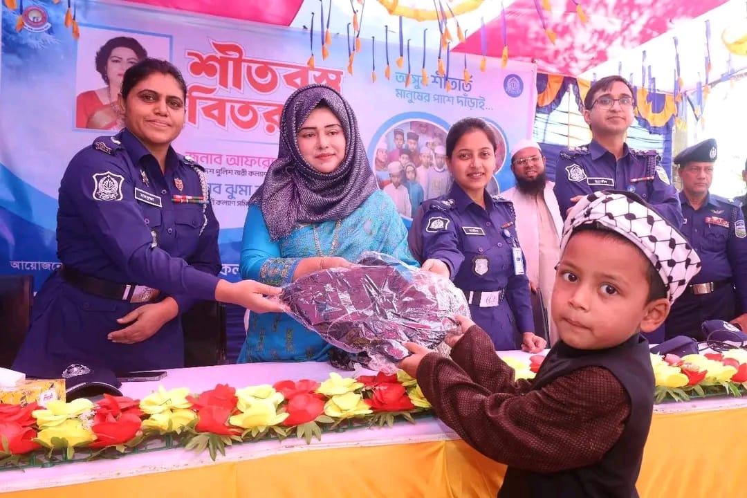 ময়মনসিংহ জেলার ফুলবাড়িয়া থানাধীন রাঙ্গামাটিয়া (জয়নাল মার্কেট) বাবুলের বাজার আজ ‘১৮ডিসেম্বর বৃহস্পতিবার দুপুর ১২.০০টায় দারুল উলুম মুঈনুল ইসলাম মাদ্রাসা’ প্রাঙ্গণে আফরোজা হেলেন, সভানেত্রী, বাংলাদেশ পুলিশ নারী কল্যাণ সমিতি (পুনাক) এর তত্ত্বাবধানে ও ঝুমা নাসরিন, সভানেত্রী, পুলিশ নারী কল্যাণ সমিতি (পুনাক) ময়মনসিংহ এর সভাপতিত্বে মাদ্রাসার শিক্ষার্থীদের মাঝে শীতবস্ত্র বিতরণ করা হয়।