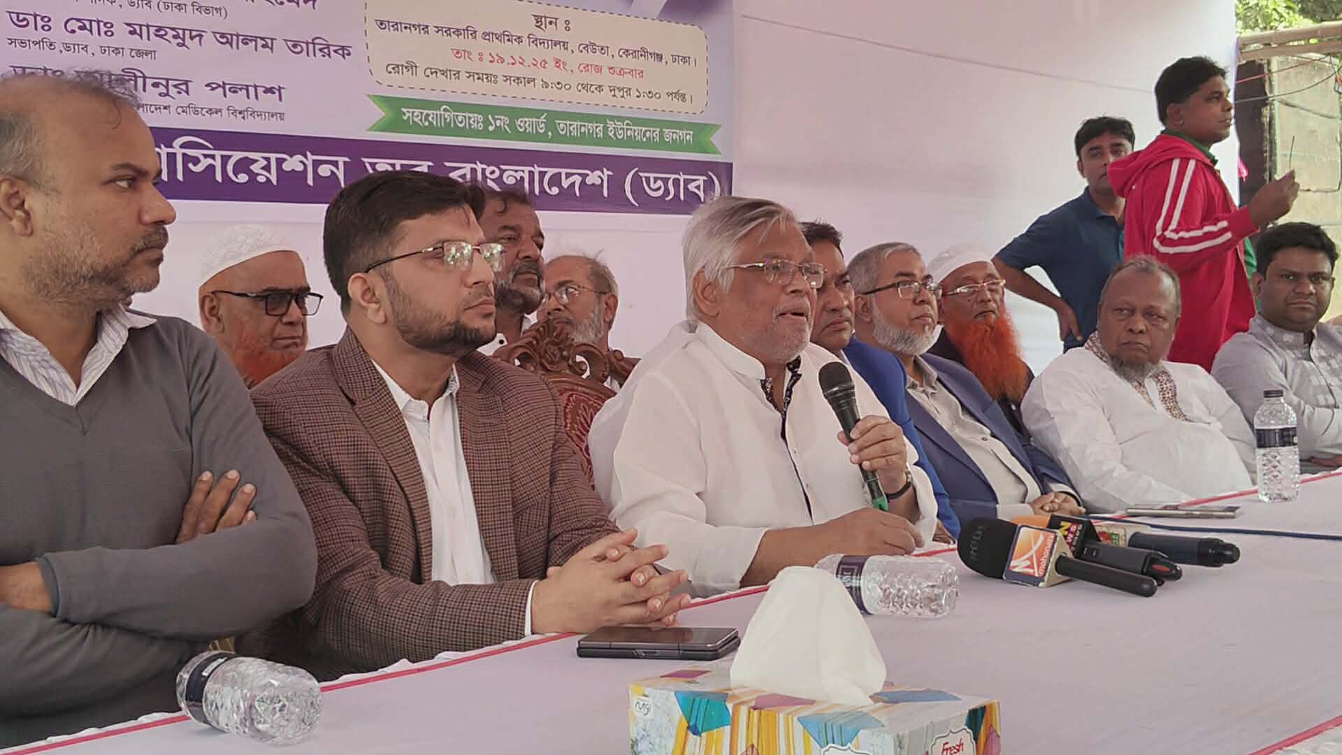 আজ শুক্রবার(১৯ ডিসেম্বর) দুপুরে কেরানীগঞ্জের তারানগর সরকারি প্রাথমিক বিদ্যালয় মাঠে ডক্টরস অ্যাসোসিয়েশন অব বাংলাদেশ ড্যাব কর্তৃক আয়োজিত ফ্রি মেডিকেল ক্যাম্প পরিদর্শনপূর্বক এক আলোচনাসভায় প্রধান অতিথির বক্তব্যে তিনি এসব কথা বলেন।