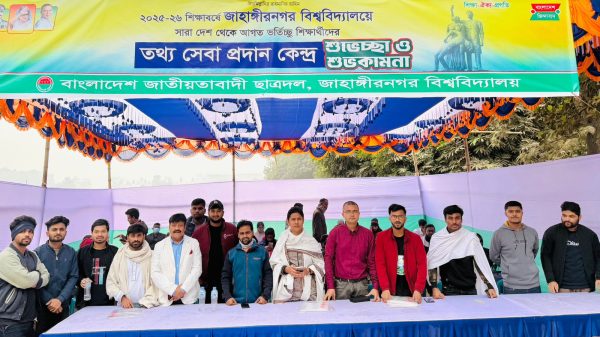 জাহাঙ্গীরনগর বিশ্ববিদ্যালয়ে (জাবি) ২০২৫-২০২৬ শিক্ষাবর্ষের স্নাতক প্রথম বর্ষ (সম্মান) ‘সি’ ইউনিটের (কলা ও মানবিকী অনুষদ, আইন অনুষদ ও তুলনামূলক সাহিত্য ও সংস্কৃতি ইনস্টিটিউট) ভর্তি পরীক্ষায় ভর্তি-ইচ্ছুক শিক্ষার্থীদের সহযোগিতায় জাতীয়তাবাদী ছাত্রদল সর্বাত্মক ভূমিকা পালন করছেন।