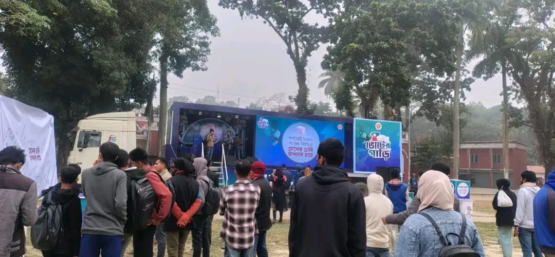 ত্রয়োদশ জাতীয় সংসদ নির্বাচন ও জুলাই সনদের গণভোট নিয়ে দেশব্যাপী প্রচারে ভ্রাম্যমাণ ভোটের গাড়িআজ ২৫ডিসেম্বর বৃ্হস্পতিবার সকাল আটটায় নগরীর সার্কিট হাউজ মাঠে প্রবেশ করে। জেলা তথ্য অফিসের পরিচালক মীর আকরাম এ সুপার ক্যারাভানের শিল্পী-কুশলীদের স্বাগত জানান। শব্দযন্ত্র স্থাপনসহ অন্যান্য প্রস্তুতি নিয়ে সকাল নয়টা থেকে দুপুর বারোটা পর্যন্ত ভোটের গাড়ির পরিবেশনা উপভোগ করতে শীতের সকালেও জনমানুষের পদভারে মুখরিত হয় সার্কিট হাউজ মাঠ।