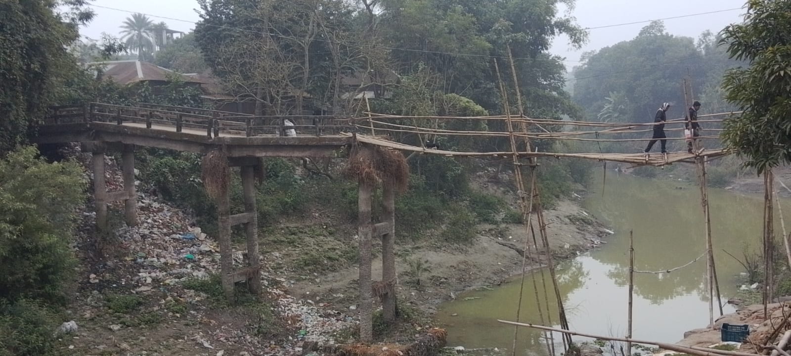 মানিকগঞ্জ জেলা ঘিওর উপজেলা ঘিওর হার্ট সংলগ্ন কুস্তা বন্দর ও কুস্তা গ্রামের মাঝখানে দিয়ে বয়ে চলা ইছামতির শাখা নদীর উপরে অবস্থিত ঝুঁকিপূর্ণ এই ব্রিজ। যেন দেখার কেউ নেই। প্রায়ই প্রতিনিয়ত চলছে ছোট-বড় দুর্ঘটনা। এই দুর্ঘটনায় স্কুল, কলেজ, মাদ্রাসা, সহ ছোট-বড় বৃদ্ধ বয়সের সাধারণ জনসাধারণ। অর্ধেক বাঁশের ভিতরে পা আটকে পড়ছে অনেকের এবং প্রতিবছরই বর্ষা এলে প্রবল স্রোতে ভেঙ্গে পড়ে বাঁশের সাঁকোটি। স্থানীয় ইউনিয়ন পরিষদ ও এলাকাবাসীর সহায়তায় তৈরি করা হয় এই সাঁকোটি।