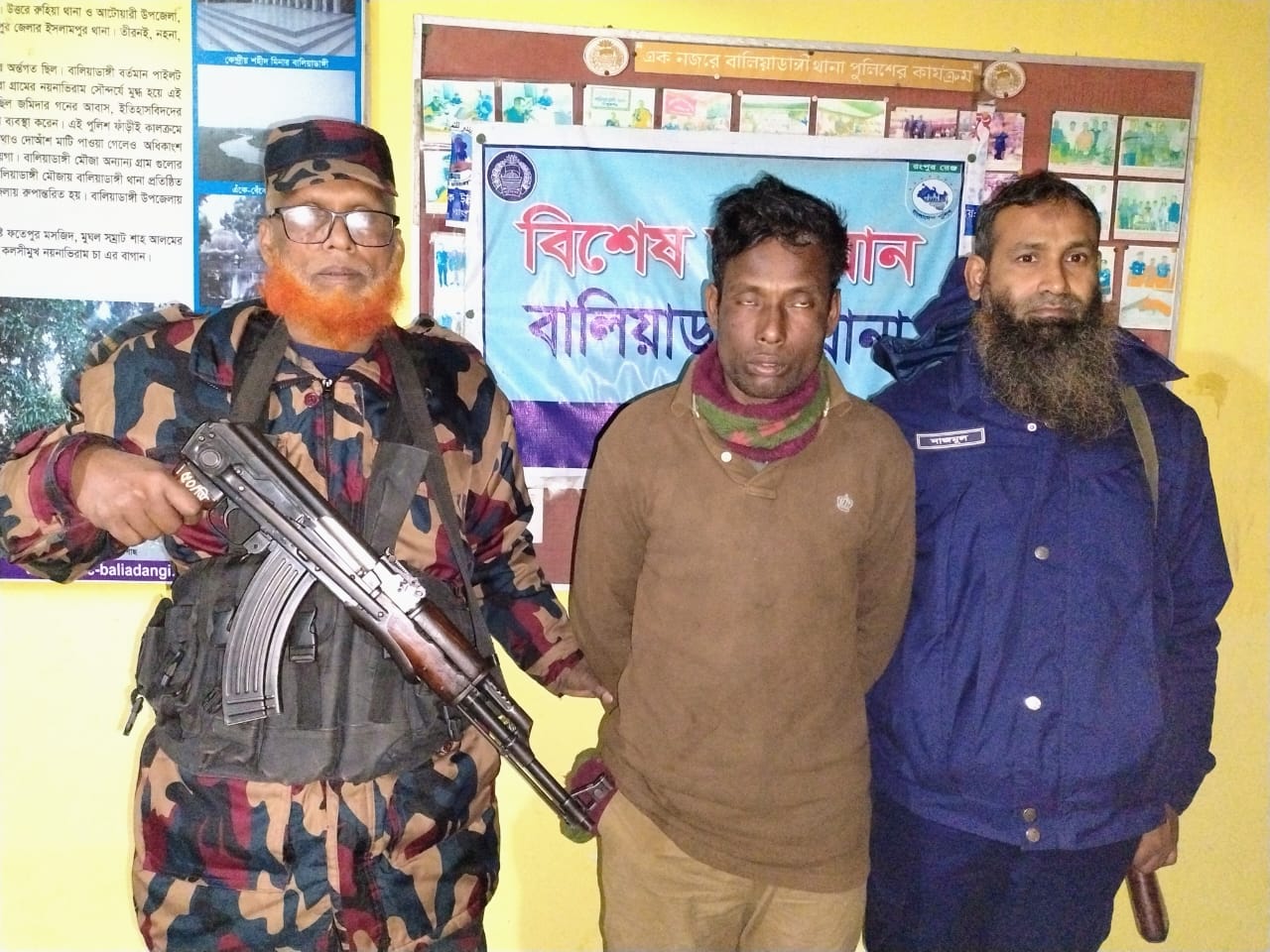 বিজিবি সূত্রে জানা যায়, গোপন গোয়েন্দা সংবাদের ভিত্তিতে গত ১ জানুয়ারি (বৃহস্পতিবার) রাতের দিকে ঠাকুরগাঁও জেলার বালিয়াডাঙ্গী থানাধীন বেউরঝাড়ী বিওপি এলাকার অভ্যন্তরে একটি বিশেষ টহল দল অভিযান পরিচালনা করে। অভিযানে সীমান্ত পিলার ৩৮০/৭ এস থেকে আনুমানিক দেড় কিলোমিটার বাংলাদেশের ভেতরে বেউরঝাড়ী নামক স্থানে এক ব্যক্তিকে আটক করা হয়।