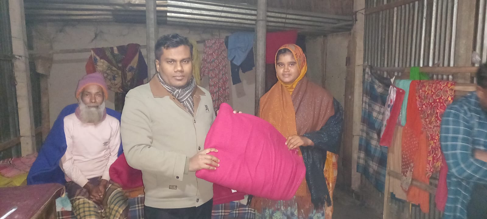 ৩রা জানুয়ারি পানবর, উপজেলা পরিষদ,তাওয়াকোচা, বাফার গোডাউনে শ্রমিকদের মাঝে ও গরুচরণ দুধনই এলাকায় প্রায় ১০০ টি কম্বল অসহায় হতদরিদ্র পরিবারের মাঝে বিতরণ করা হয়।