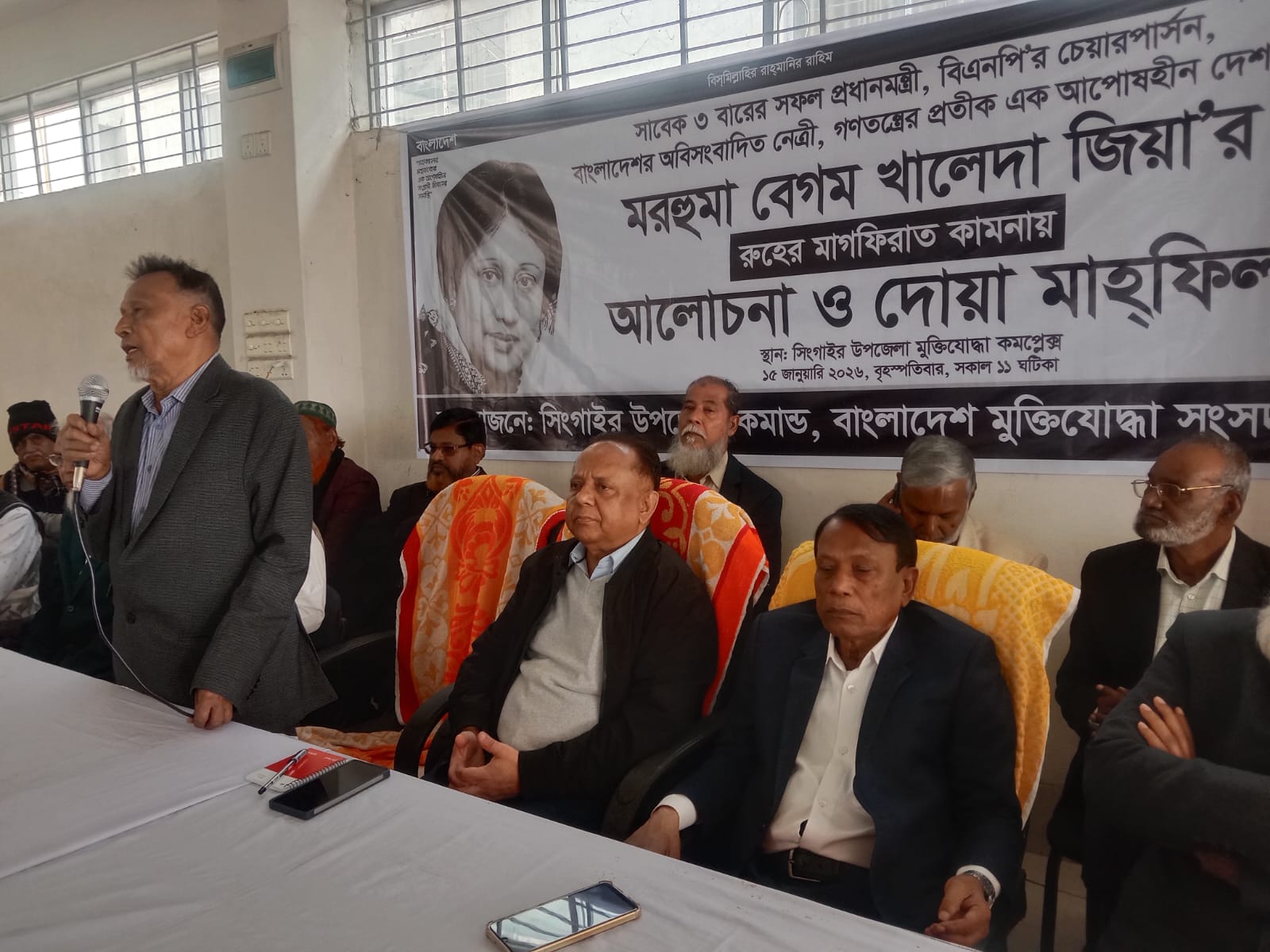 সিংগাইর উপজেলা মুক্তিযোদ্ধা সংসদ কমপ্লেক্সে সাবেক প্রধানমন্ত্রী বিএনপি চেয়ারপারসন গণতন্ত্রের প্রতীক আপোষহীন নেত্রী মরহুমা বেগম খালেদা জিয়ার রুহের মাগফিরাত কামনায় আলোচনা ও দোয়া মাহফিল অনুষ্ঠিত হয়।