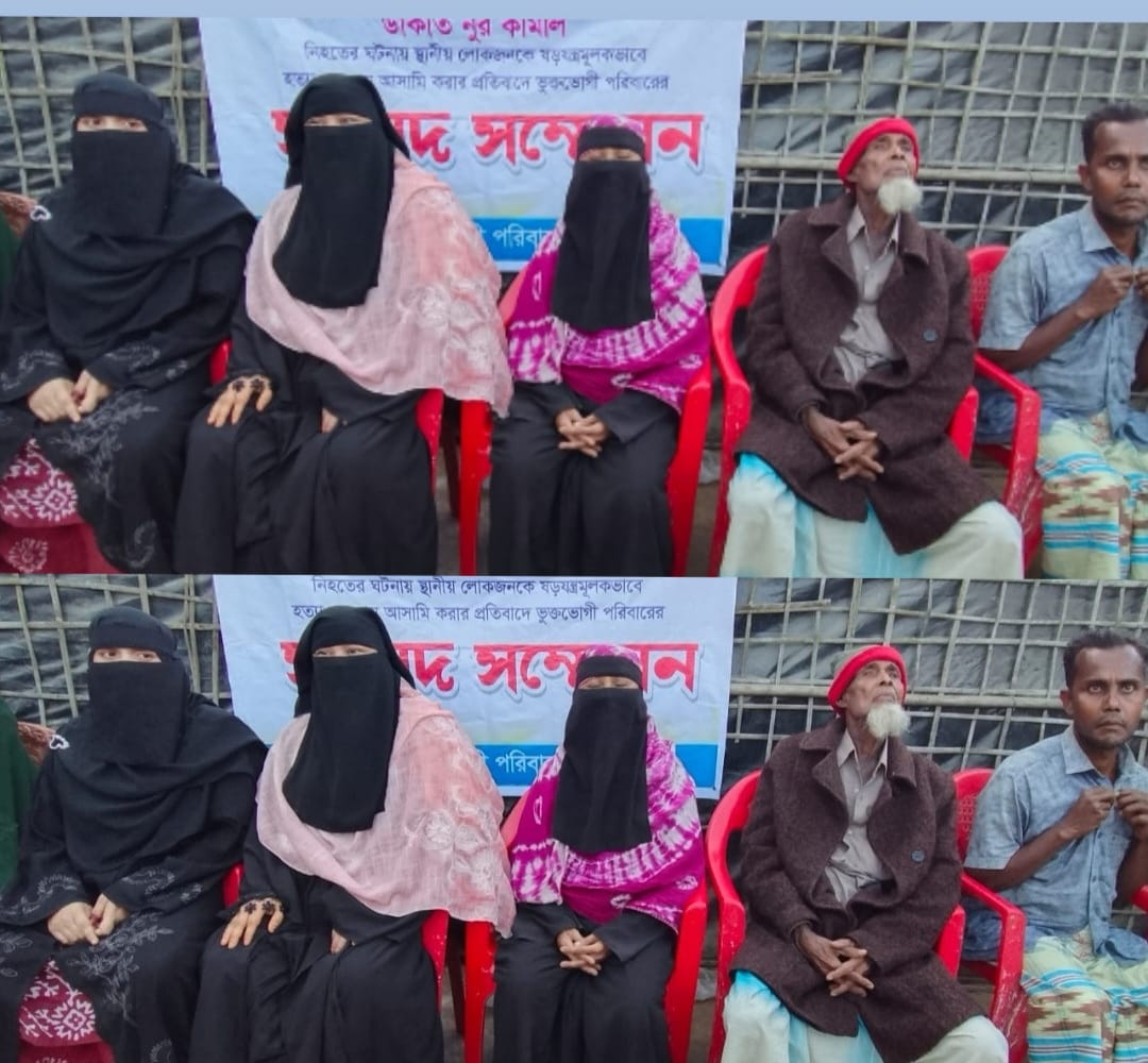 টেকনাফের মুচনী রেজিস্টার্ড রোহিঙ্গা ক্যাম্পে শীর্ষ ডাকাত নুর কামাল নিহতের ঘটনায় স্থানীয় নিরীহ লোকজনকে উদ্দেশ্যমূলকভাবে হত্যা মামলায় জড়ানোর প্রতিবাদে সংবাদ সম্মেলন অনুষ্ঠিত হয়েছে।