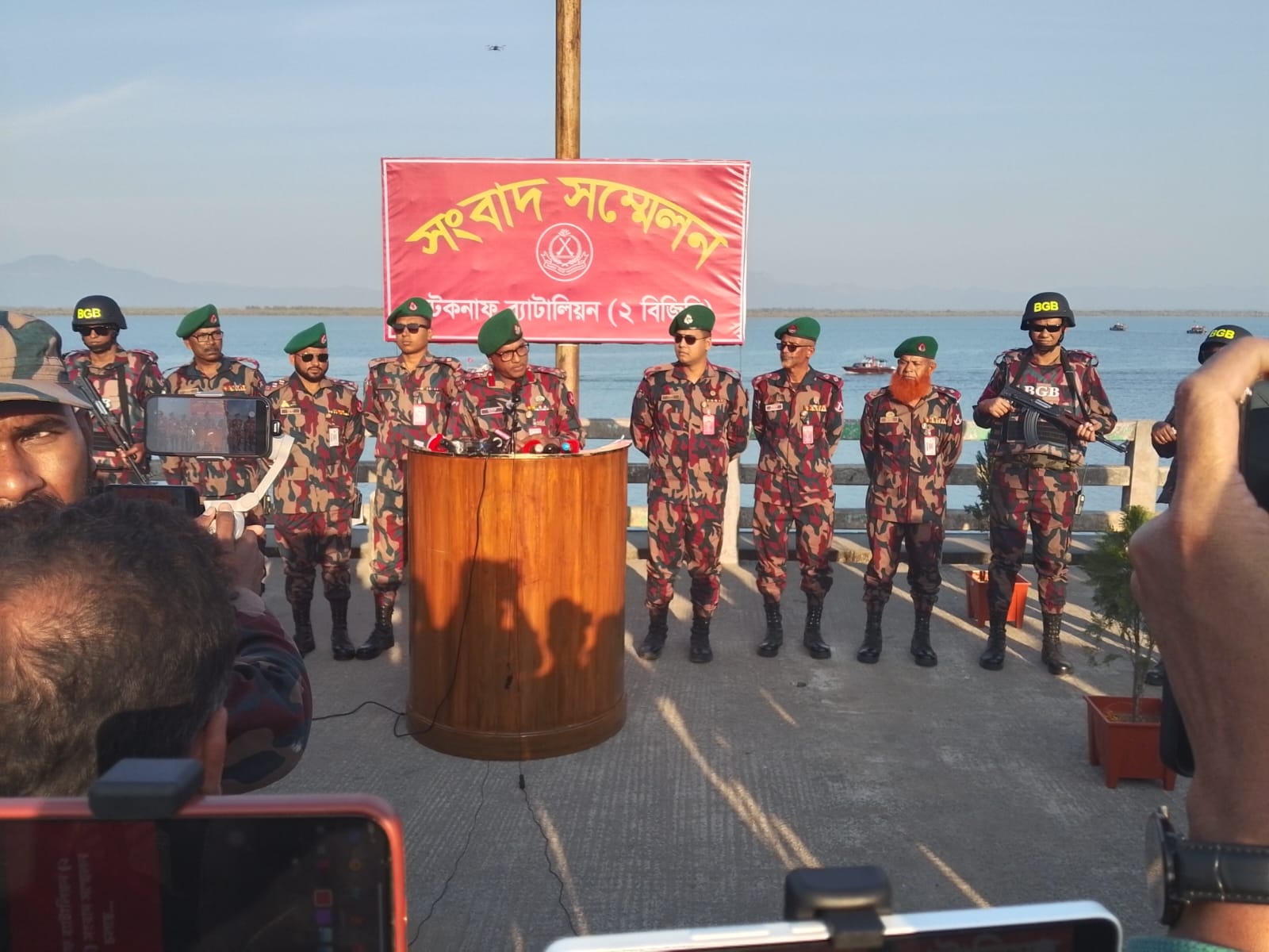 সংবাদ সম্মেলনে বক্তব্য রাখেন টেকনাফ ব্যাটালিয়নের অধিনায়ক লেফটেন্যান্ট কর্নেল মো. হানিফুর রহমান ভূঁইয়া, এসপিপি, এএফডব্লিউসি, পিএসসি। তিনি বলেন, বিজিবি একটি পেশাদার, শৃঙ্খলাবদ্ধ ও রাজনৈতিকভাবে সম্পূর্ণ নিরপেক্ষ বাহিনী হিসেবে নির্বাচনকালীন সময়ে শান্তিপূর্ণ পরিবেশ নিশ্চিত, আইন-শৃঙ্খলা রক্ষা এবং জনগণের ভোটাধিকার সুরক্ষায় সর্বোচ্চ দায়িত্বশীল ভূমিকা পালন করবে।