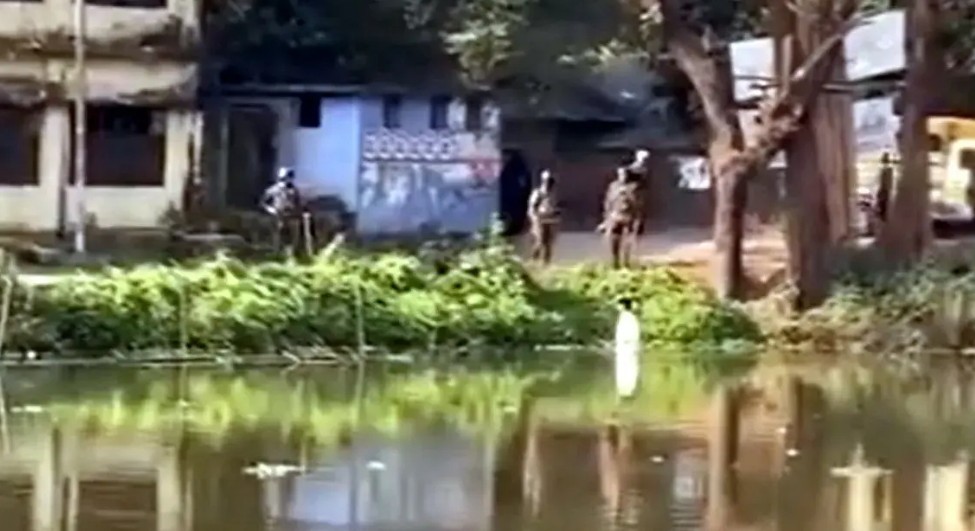 প্রত্যক্ষদর্শীরা জানিয়েছেন, ভোটগ্রহণ শুরু হতেই কেন্দ্রের আশপাশে এক ব্যক্তি ভোটারদের প্রভাবিত করার চেষ্টা করেন। বিষয়টি সেনাবাহিনীর টহল দলের নজরে আসে। তারা দ্রুত ঘটনাস্থলে পৌঁছে তাকে আটক করেন এবং কেন্দ্র সংলগ্ন একটি পুকুরে নামিয়ে শাস্তি প্রদান করেন।