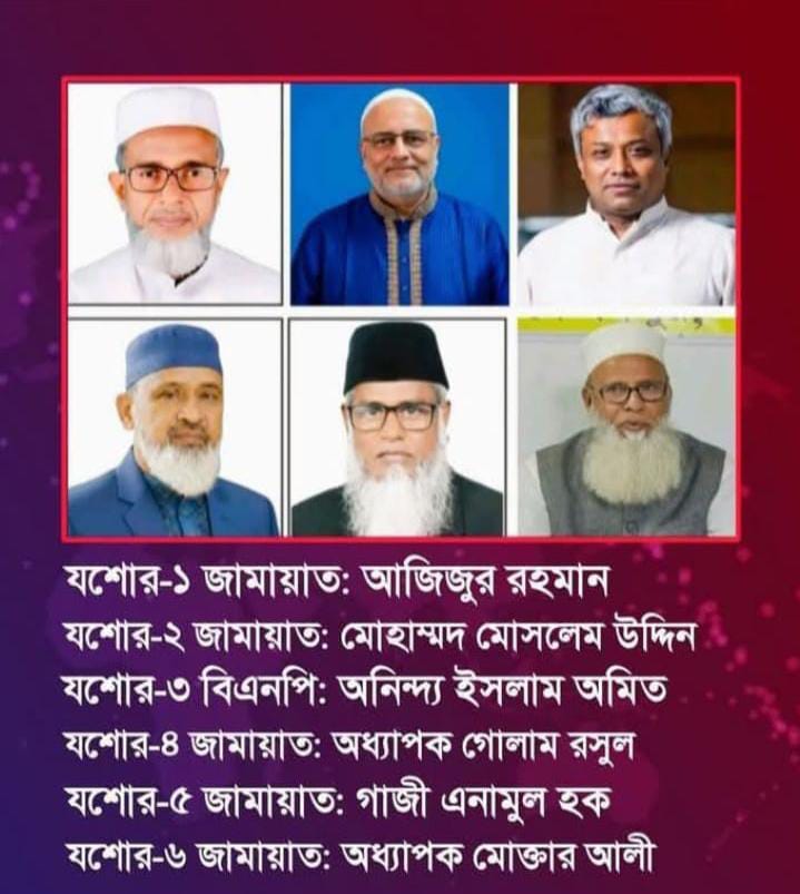 যশোর সংসদীয় আসনও নামের তালিকা।