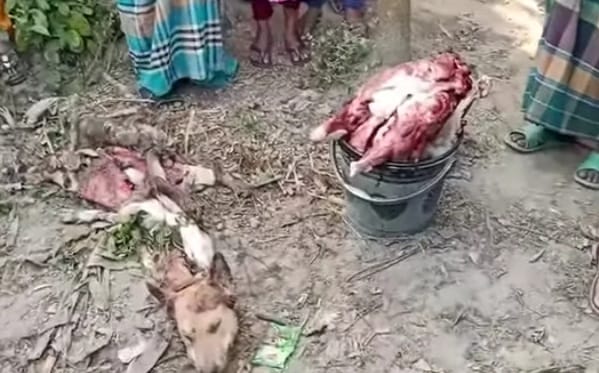 তারা নিয়মিত বাড়ি থেকে মাংস এনে বাজারে বিক্রি করতেন। রবিবার সকালে এনতাজুলের বাড়িতে কুকুর ধরে জবাই করার বিষয়টি স্থানীয়দের নজরে আসে। পরে বাজারে বিষয়টি ছড়িয়ে পড়লে অভিযুক্তরা দ্রুত মাংস ফেলে দোকান থেকে পালিয়ে যায়। অল্প সময়েই শত শত নারী-পুরুষ ঘটনাস্থলে ভিড় জমায়।