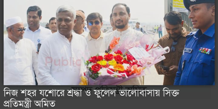 মন্ত্রিসভায় শপথ গ্রহণের পর এটিই তার প্রথম জেলা সফর। তাকে ঘিরে সকাল থেকে শহর জুড়ে ছিল উৎসব মুখর পরিবেশ। বিমানবন্দরে উচ্ছ্বাস, স্লোগানে মুখর আকাশ। সকাল থেকেই যশোর বিমানবন্দরে ভিআইপি লাউঞ্জের সামনে কর্মী ও সাধারণ মানুষের ঢল নামে।