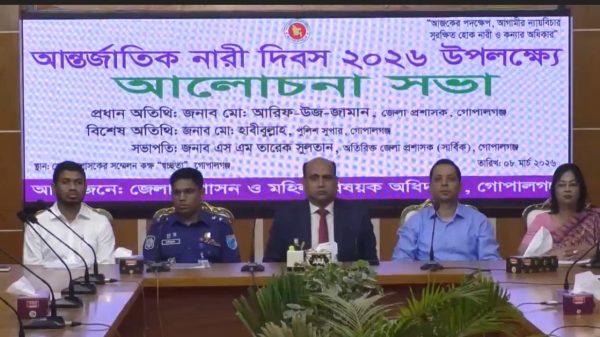 আন্তর্জাতিক নারী দিবস পালন উপলক্ষ্যে গোপালগঞ্জে আলোচনা সভা অনুষ্ঠিত হয়েছে।