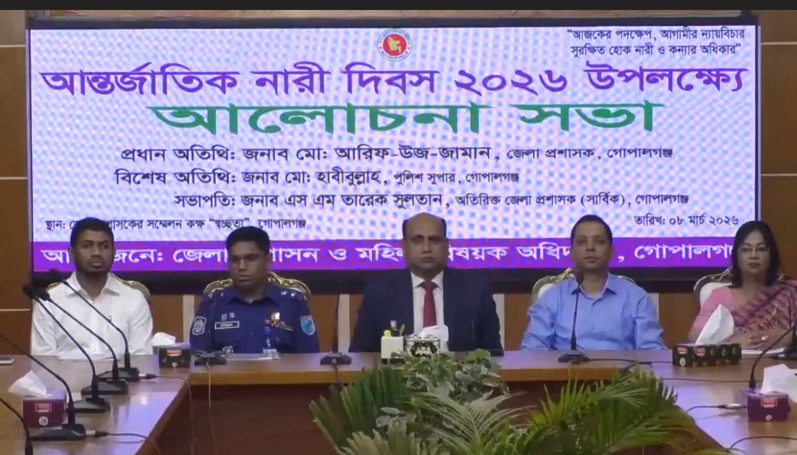 আন্তর্জাতিক নারী দিবস পালন উপলক্ষ্যে গোপালগঞ্জে আলোচনা সভা অনুষ্ঠিত হয়েছে।