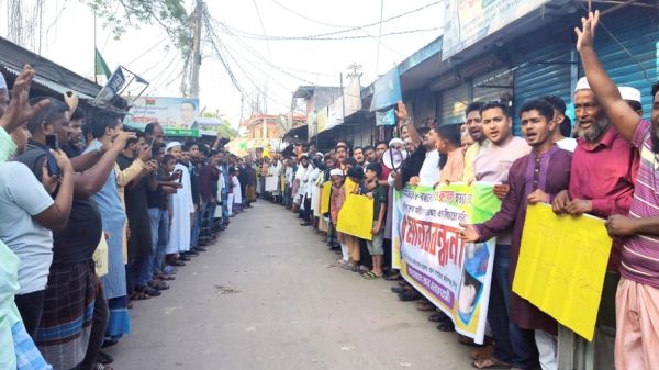 চাঁদপুরের ফরিদগঞ্জে শিশু রুবেল হত্যার ১৭ দিনেও রহস্য উন্মোচনে উল্লেখযোগ্য অগ্রগতি না হওয়ার প্রতিবাদে মানববন্ধন ও বিক্ষোভ মিছিল করেছে এলাকাবাসী। হত্যাকারীদের শনাক্ত এবং আটকের দাবিতে আজ শুক্রবার (২৭ মার্চ ২০২৬) বিকেলে উপজেলার বালিথুবা পূর্ব ইউনিয়নের পাটওয়ারীর বাজারে এবং শিশুটির বাড়ির সামনে পৃথক মানববন্ধন হয়।