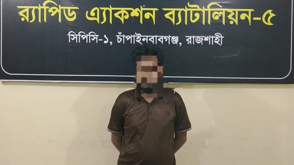 মোঃ রবিউল ইসলাম মিনাল, রাজশাহী জেলা প্রতিনিধি: চাঁপাইনবাবগঞ্জ সদর উপজেলার চরবাগডাঙ্গায় নিজ বসতবাড়িতে অভিযান চালিয়ে ২০০ গ্রাম হেরোইনসহ আলী হোসেন (২৩) নামে এক মাদক কারবারীকে গ্রেফতার করেছে র্যাব-৫। রোববার (০৮
